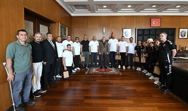 İlk kez katıldığı 2. Lig’den 1. Lig’e çıkma başarısı gösteren Kahramanmaraş Büyükşehir Belediyespor Kadın Goalball Takımı’nı makamında ağırlayan Başkan Görgel, “Kahramanmaraş’ımızın adını sporun zirvesine taşıyan Kadın Goalball Takımımızı yürekten kutluyorum. Bu başarı, sadece bir şampiyonluk değil; azmin, inancın ve birlikte başarma ruhunun en güçlü ifadesidir” dedi.Kahramanmaraş Büyükşehir Belediye Başkanı Fırat Görgel, 2024 yılında kurulan ve ilk kez katıldığı 2. Lig’de Türkiye’nin farklı şehirlerinden katılan zorlu rakipleri bir bir devirerek 1. Lig’e yükselen Kahramanmaraş Büyükşehir Belediyespor Kadın Goalball Takımı’nı makamında ağırladı. Ziyarette, Teknik Direktör Gültekin Karasu, Antrenör Nevruz Tokuç, sporcular Hatice Dinçer, Reyyan Cömert, Derya Kartal ve Medine Köse yer aldı. Kahramanmaraş Büyükşehir Belediyespor Kadın Goalball Takımı, Büyükşehir Belediye Başkanı Görgel’e destekleri için teşekkür etti.“Türkiye’ye İlham Oldular”Büyükşehir Belediyespor Kadın Goalball Takımı’nın kazandığı başarının sadece spor alanında kazanılan başarı olmadığını, Kahramanmaraş’ın azmini, birlik ruhunu ve engelleri aşma kararlılığını temsil ettiğini dile getiren Başkan Görgel, “Kahramanmaraş’ımızın adını sporun zirvesine taşıyan Kadın Goalball Takımımızı yürekten kutluyorum. Bu başarı, sadece bir şampiyonluk değil; azmin, inancın ve birlikte başarma ruhunun en güçlü ifadesidir. Engelleri aşarak sahada gösterdikleri mücadeleyle hepimize ilham oldular. Sporun kapsayıcı gücünü ve Kahramanmaraş’ın potansiyelini bir kez daha gururla tüm Türkiye’ye duyurdular. Teknik ekibimizi, sporcularımızı ve emeği geçen herkesi tebrik ediyorum. Büyükşehir Belediyesi olarak, sporun her alanında destek olmaya, bu şehri bir spor şehri yapma yolunda kararlılıkla ilerlemeye devam edeceğiz” ifadelerini kullandı.
