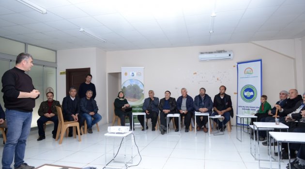 Toplantıda açılış konuşmasında proje hakkında katılımcılara bilgi verilerek öncelikle proje üreticilerine konvansiyonel üretimden organik tarıma geçmeleriyle birlikte zirai mücadelede kimyasal mücadele yöntemlerini terk ederek biyolojik ve biyoteknik mücadele yöntemlerini uyguladıkları yine bitki besleme açısından da kimyasal gübreleri terk ederek ahır gübresi, yeşil gübreleme gibi biyolojik kökenli gübreleri kullandıklarını ifade edildi. Yabancı ot mücadelesinde herbisit yerine mekanik mücadele ve talaşla malçlama uygulaması yaptırıldığını söyleyerek Yapılan tüm bu uygulamaların amacının, ilimizde özellikle baraj havzasında bulunan zeytin alanlarının organik tarıma kazandırılarak, kimyasal kirliliği en aza indirmek, görünürlük faaliyetleri ile tüketici bilinci oluşturmak ve güvenilir gıdaya ulaşmak olduğunu söylendi.