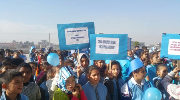 Yürüyüşe Diyabetin simgesi olan balonlarla hazırlanmış mavi halka yürüyüşün en başında yer alırken ve hazırlanan pankartlar , sloganlar, mavi balon ve şapkalar buna eşlik etti. Yürüyüş esnasında mahalle sakinlerine Hacı osman arıkan ilkokulu ve imam hatip ortaokulu tarafından hazırlanan diyabet broşürleri dağıtıldı.