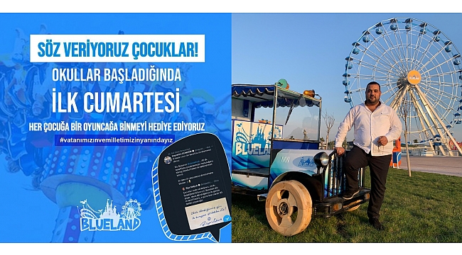 Bakan Selçuk'un sosyal medya hesabı Twitter'dan "Çocuklar evde sıkıldığınızı, okulu özlediğinizi biliyorum. Buradan söz olsun, okula döndüğümüz ilk günün ilk teneffüsünü, o güne özel olarak 40 dakika yapacağız." mesajına Kahramanmaraş’ta Blueland olarak kayıtsız kalmadıklarını dile getiren Şahinkanat: "Bugün Milli Eğitim Bakanımızın attığı bir twitvardı. Öğrencilerimize güzel bir mesaj vermişti. Biz de buna nasıl destek oluruz diye düşündük. Uzun teneffüs müjdesinin ardından bizlerde Blueland tesislerimizde okullar başladığında ilk cumartesi bir oyuncağımızı Kahramanmaraş’ta tüm öğrencilerimize ücretsiz yapmaya karar verdik. Bizim buradaki amacımız, öğrencilerimize moral vermek. Bakanımızın vermiş olduğu mesaja destek vermek, moral ve motivasyon sağlamak amacıyla böyle bir twite cevap vermek istedik." İfadelerine yer verdi.