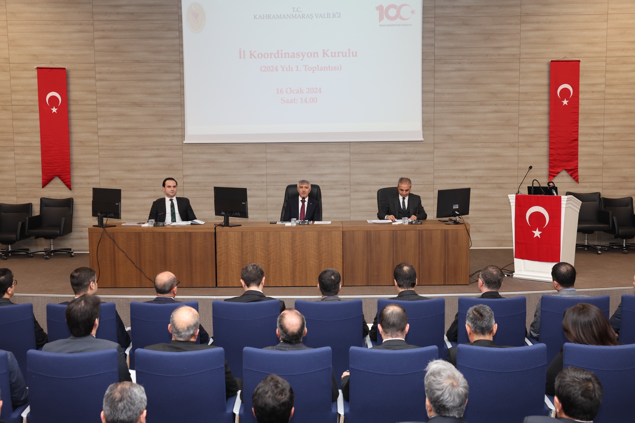 2024 yılı devlet yatırımlarının yaklaşık yüzde 40’ının bölgemize yapılmasının planlandığına değinen Vali Ünlüer, “2023 yılı üzücü olayların ve asrın felaketinin yaşandığı bir yıl oldu. 11 ilimizi doğrudan etkileyen depremlerden kaynaklı sorunlarla mücadelemiz devam ediyor. 2024 yılı ilimiz adına belki de kalkınmanın en yüksek olacağı bir yıl olacaktır. Bu kapsamda 2024 yılı devlet yatırımlarının yaklaşık yüzde 40’ının bölgemize yapılması planlanıyor. Kurumlarımızın bu gayretli çalışmaları sonucunda yıl sonuna doğru inşallah vatandaşlarımızın durumu başlangıca göre çok daha iyi noktada olacağına inanıyorum. 2024 yılında projelerin tamamlanması için çalışmalara hız verirken kurumlarımızın yaptığı planladığı yatırımlarda Bakanlıklarımızdan gönderilen ödeneklerin kullanılmasında da tasarruf tedbirlerine uymaları önem arz etmektedir. Daha iyi bir Kahramanmaraş için kurumlarımızın koordinasyon içerisinde titizlikle çalışmalarını istiyorum. Bu vesileyle paydaş kurum temsilcilerimize çalışmalarında kolaylıklar diliyor, toplantının ilimiz adına hayırlara